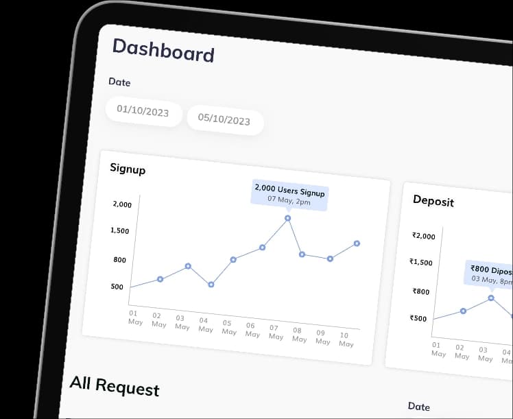 Dashboards for clicks, signups, deposits.